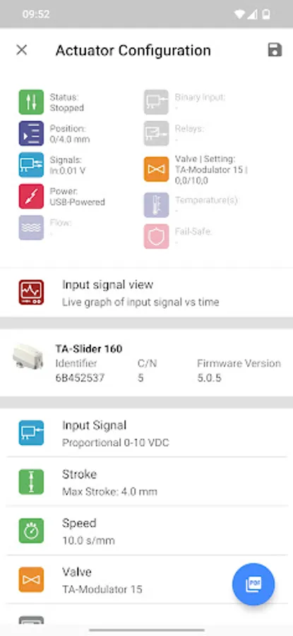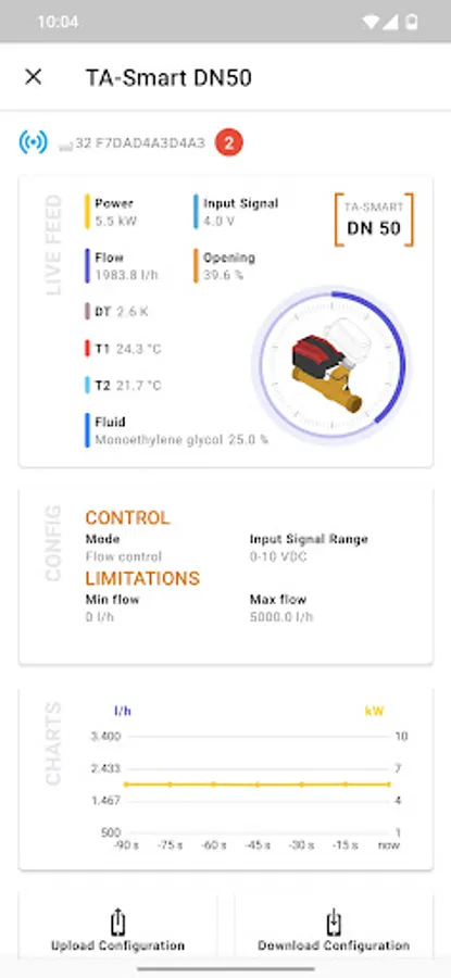 * Live graphical view of flow and power for TA-Smart and received input signal for TA-Slider