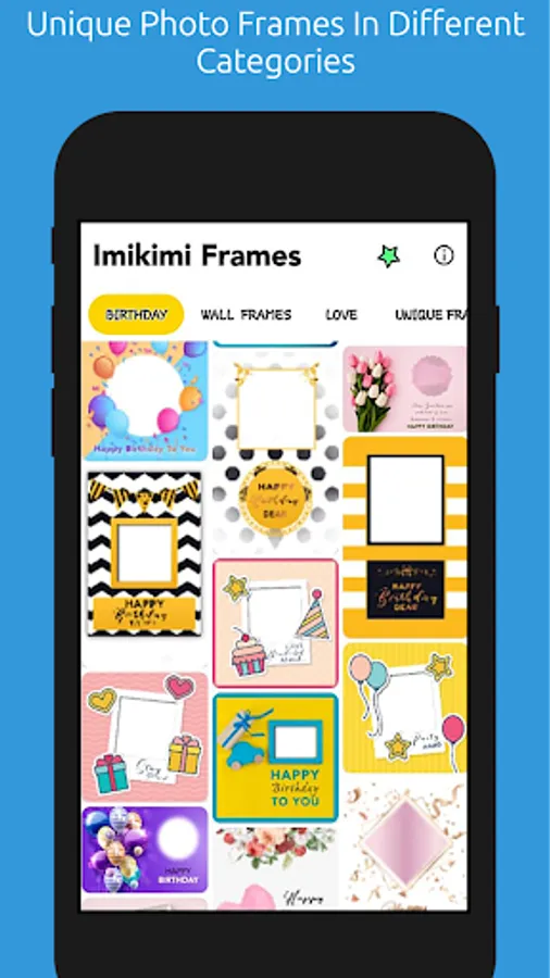 Imikimi Frames app provides unlimited and fabulous design frames for all occasions and all categories, capture your lovely special unforgettable moment by this amazing app. This app has an elegant and unique collection of photo frames, greetings, etc...