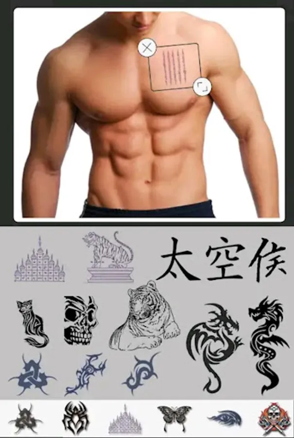 - Select one or more tattoo and set it on your photo.