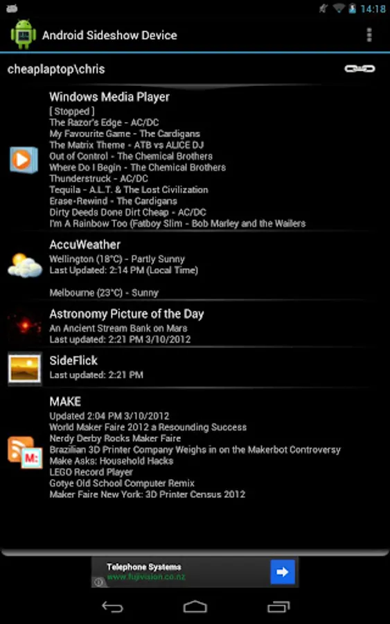 7. The enabled sideshow gadgets will automatically appear on your Android device while running Sideshow