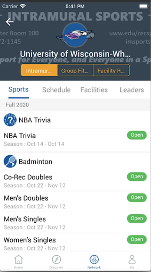 The official app for UW-Whitewater Rec Sports. Programs and services include: aquatics, club sports, fitness memberships/reservations, group fitness & cycling classes/reservations, intramural sports, personal training, student employment and more!