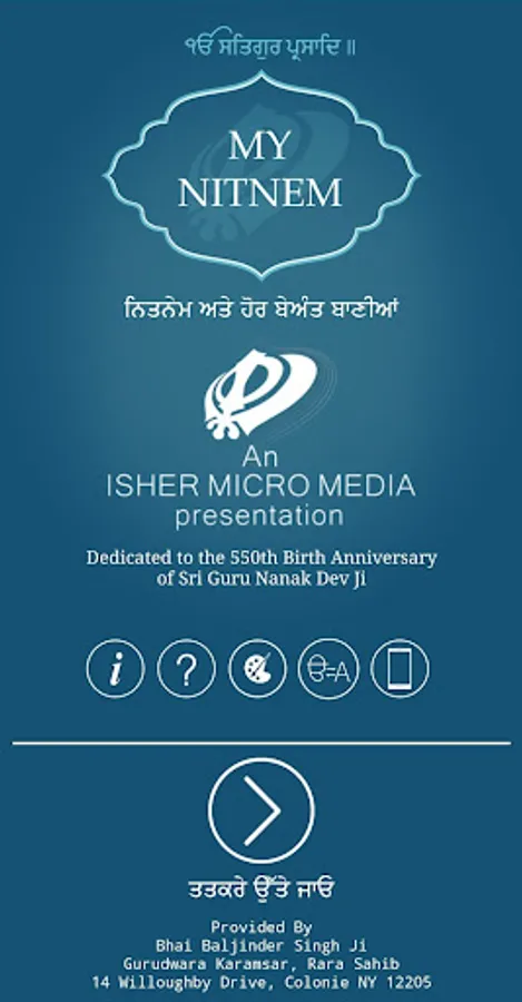 After providing Gurbani Explorer we are delighted to present and provide MyNitnem on behalf of Isher Micro Media for the Gurbani lovers worldwide. It is launched on the auspicious occasion of 352nd birth anniversary of Sri Guru Gobind Singh ji and dedicated to the 550th birth anivarsary of Sri Guru Nanak Dev ji. This app is digital composition of Banis read as daily prayer by the Sikh masses. It is generally called Gurbani Gutka, Sundar Gutka or Nitnem Gutka when provided in printed format. The customisability, simplicity and flexibility of this application make it more beautiful and user friendly.