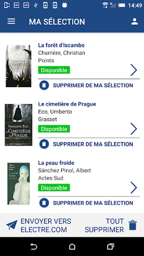 • The selection of books to share with a friend or send to your electre.com account, for subscribers.