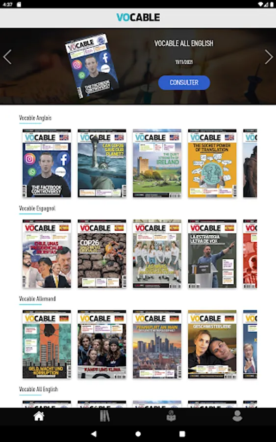 With Vocable, you read every 15 days the best of international press VO with translation of difficult words. You naturally enrich your vocabulary! More than 1000 words are translated every issue!