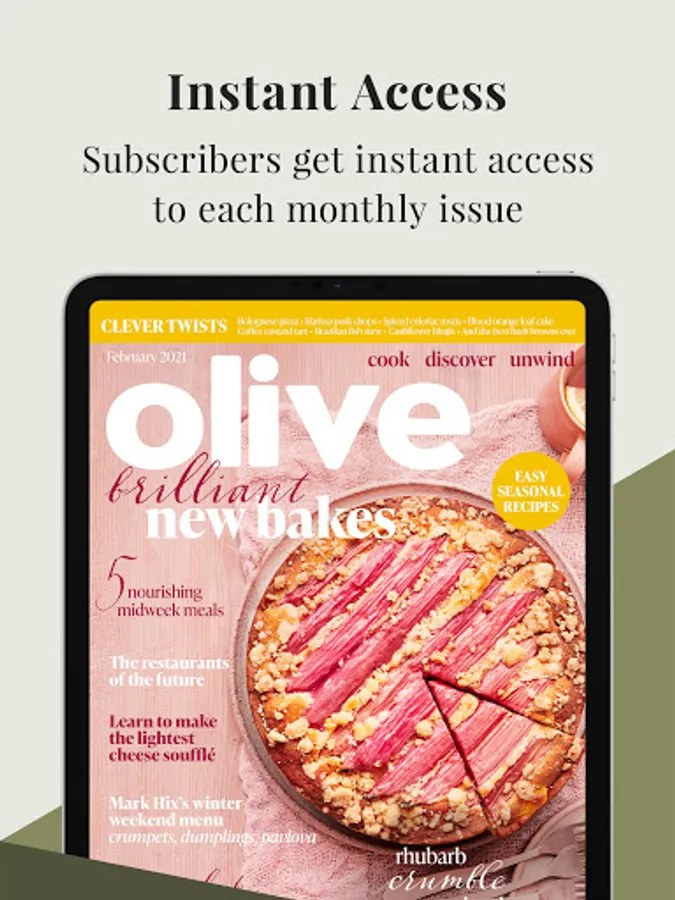 Discover imaginative recipes with a strong focus on cooking the food you love. Each month, the digital editions of olive magazine feature inspiring seasonal recipes, from lighter everyday ideas, to easy recipes from around the world and baking inspiration. With each issue you can cook a selection of our triple-tested recipes, from easy midweek meals, no-cook dishes and nourishing inspiration to weekend bakes, chef recipes and effortless entertaining ideas.