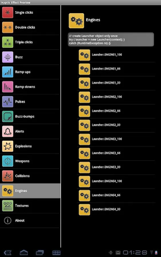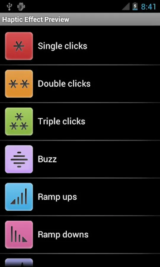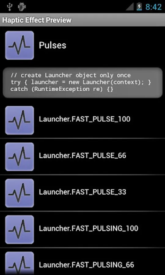 Haptic Effect Preview is directed to developers who are implementing tactile feedback (also referred to as haptics or "rumble") into their applications. This application is used to preview, or feel, all the haptic effects that are included in Immersion’s Universal Haptics Layer (UHL) library. Developers are invited to learn more about the UHL at developer.immersion.com. . The UHL library is available for download at https://touchsense.com/games/developers