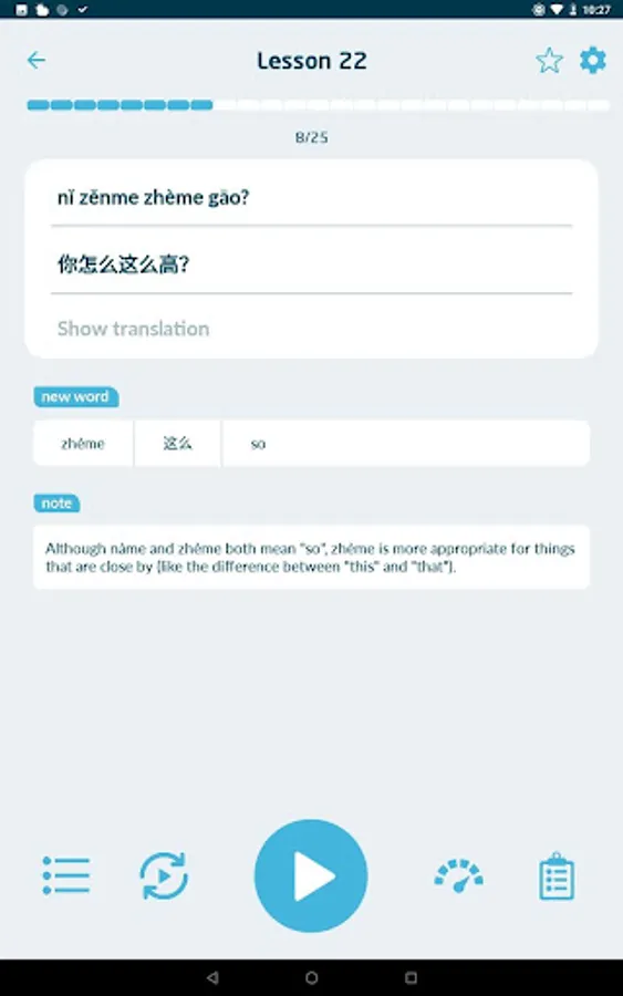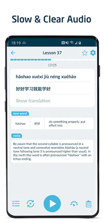 • Uses the "comprehensible input" method of language learning, providing you with lots of easy to understand Chinese sentences that gradually increase in difficulty.