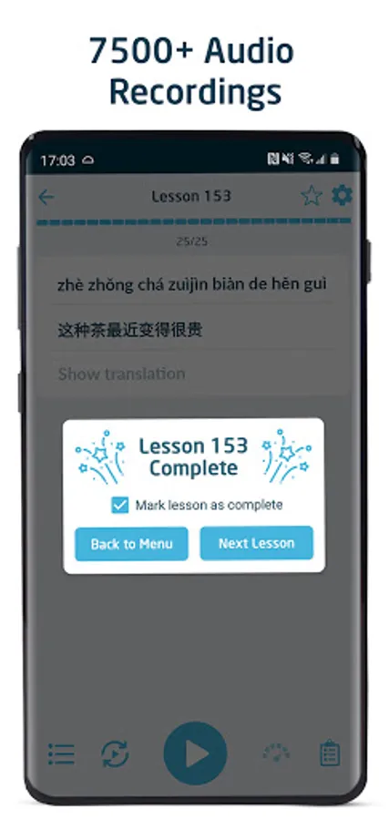 • Highly customisable audio playback (set the exact time delay between sentences).