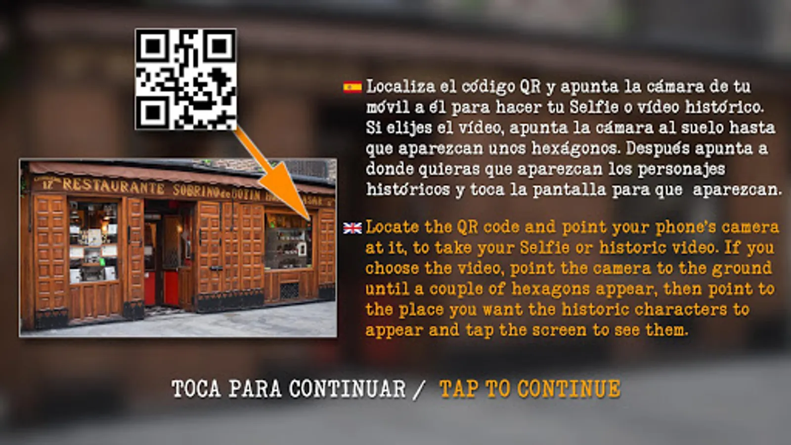 Interactive augmented reality application where you can explore the history of the oldest restaurant in the world Sobrino de Botín Restaurant