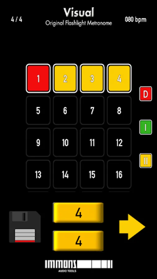 If you want to have a huge amount of advanced settings, download VISUAL+ and get complete time signature (1/1 to 64/16), storage, torch and preferences functions (precounter, bpm/ms, display on/off, etc.).
