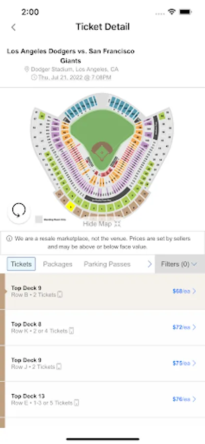 • Easy Search: Our filters allow you to search by event name, price, section, row, and date.