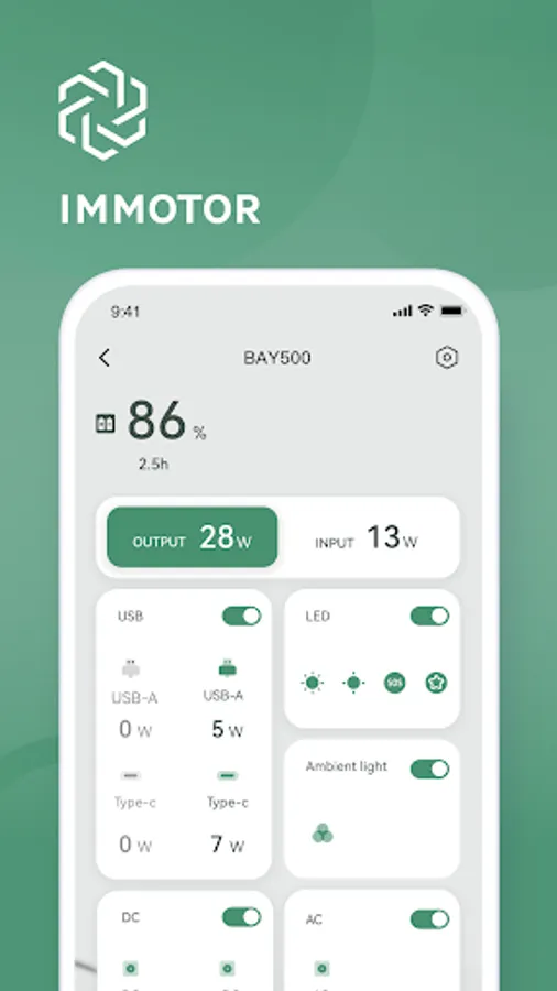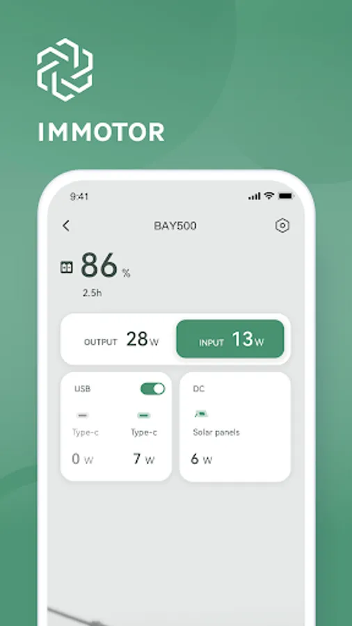 Connect your device via bluetooth, you can view the battery status, output power, solar input power, etc.