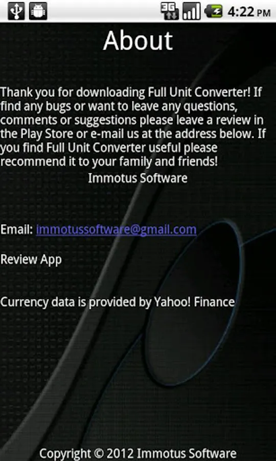 ***Notice the promo video is Full Unit Converter running on Android 4.1(Jelly Bean), the pictures are taken when Full Unit Converter is running on Android 2.2(Froyo).***