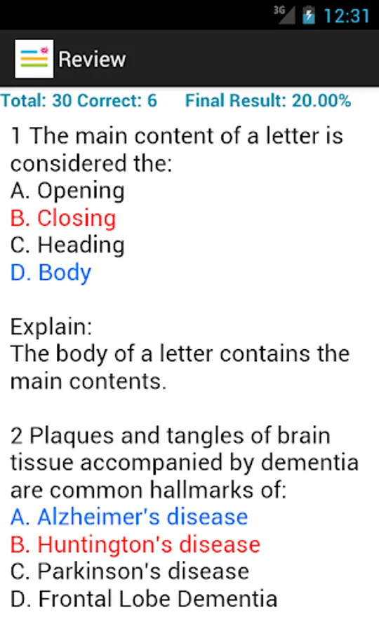 - Test mode: simulate the real exam experience, get detailed results and scoring;