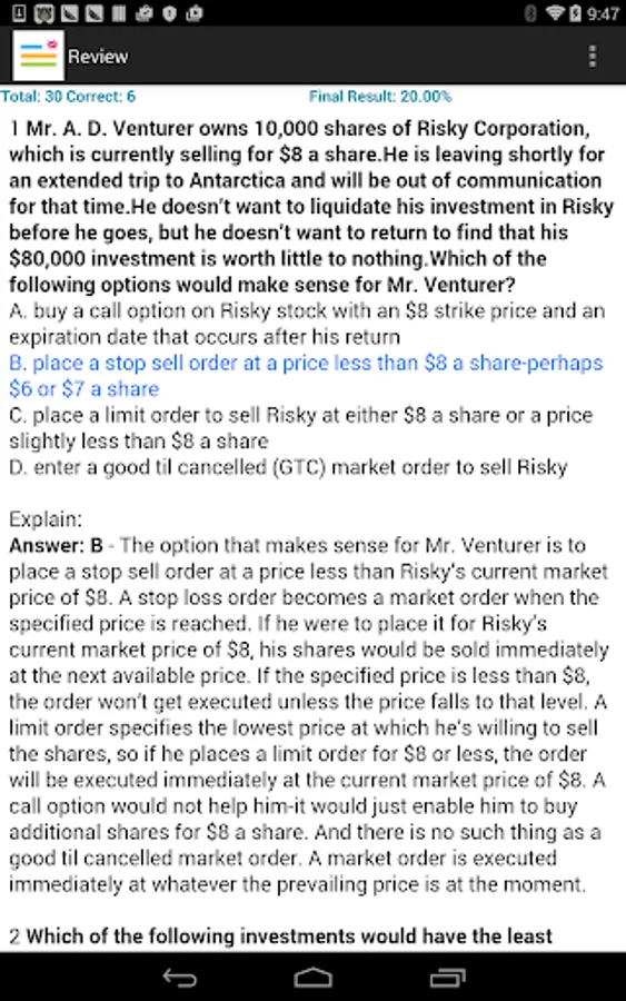 Series 6 Test Prep is to help you prepare the Series 6 exam on the go. With its exclusive intuitive and elegant UI, not only can you learn the knowledge for the test and get the serious exam experience, but also with joy and incredible flexibility. With the app, you can set your own pace and practice anytime you want, anywhere you want, get instant feedback and learn something immediately to get yourself better prepared for the test. Among many cool features, the most useful one is to allow you concentrating on your incorrect/difficult questions only, Just add them to your favorite module and practice your own weak points again and again, that's way more efficient than the traditional way of study.