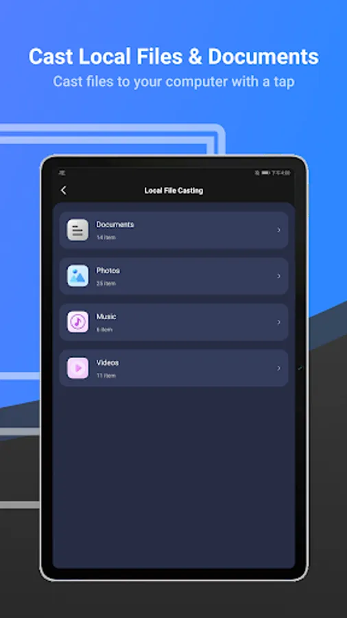 - Cast apps and files with ease. Play music, films, games, and share photos with your families on a larger screen. Make your spare time more fun.