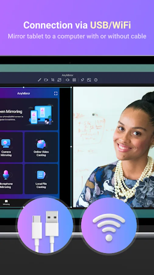 - As a teacher, you can display courseware, files, and exercises with AnyMirror. It also enables you to annotate courseware or type down key points onto your phone/tablet and share the screen with the computer in real-time.