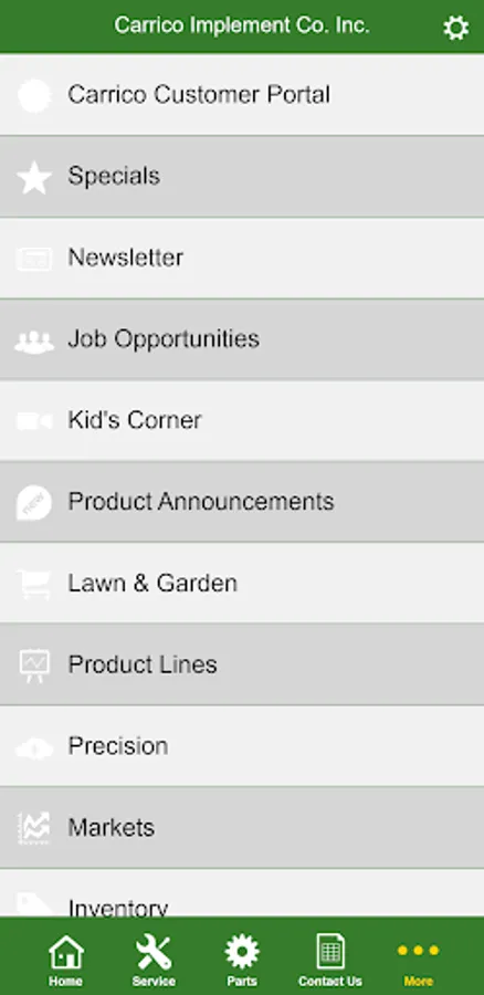 Carrico Implement is a John Deere dealer and was established in 1955 by Paul Carrico. Originally a Minneapolis Moline dealership, the organization grew to add many lines of farm equipment, and finally the John Deere line was added in 1986. The dealership is still a family owned business, now in its fourth generation.