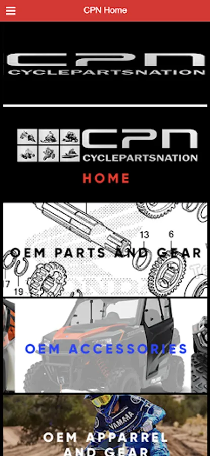 Cyclepartsnation.com is a leader in the Powersports parts, accessories, and apparel sales directly to consumers. Cyclepartsnation.com carries all the major powersports brands as well as marine and outdoor power equipment. We also carry a wide array of aftermarket parts and accessories for motorcycles, ATVs, snowmobiles, UTV's, off-road, street, and v-twin motorcycles. With this application you will be able to view and purchase items, receive notifications and promotions, contact us, and stay up to date with what’s happening at Cyclepartsnation.com. We look forward to helping you.