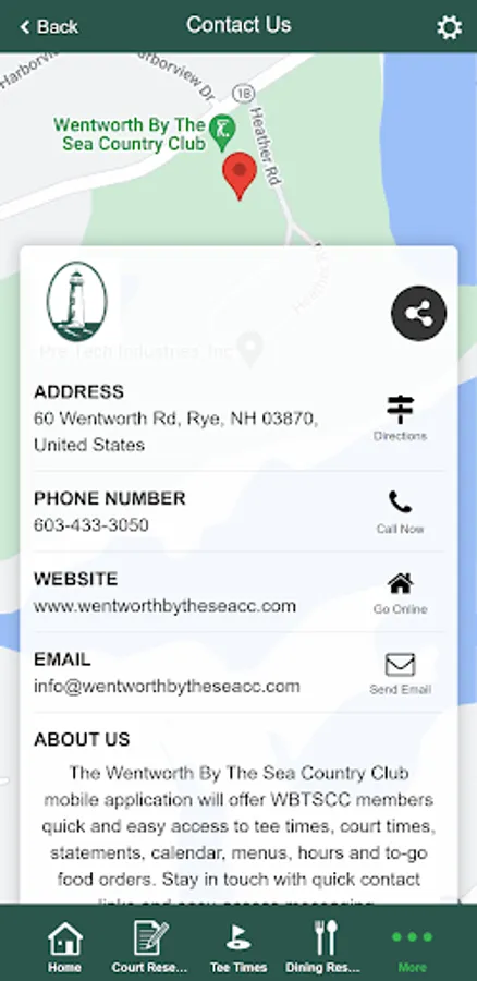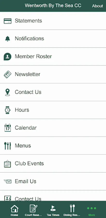 The Wentworth By The Sea Country Club mobile application will offer WBTSCC members quick and easy access to tee times, court times, statements, calendar, menus, hours and to-go food orders. Stay in touch with quick contact links and easy-access messaging.