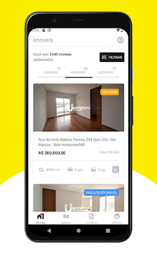 - My properties: information about each property according to code, purpose, type and value negotiated.