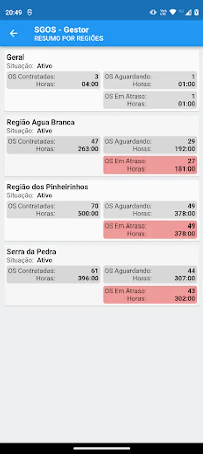 App for managing contracted and executed service orders. Allows monitoring of service rates, execution capacity and contracting of new service orders