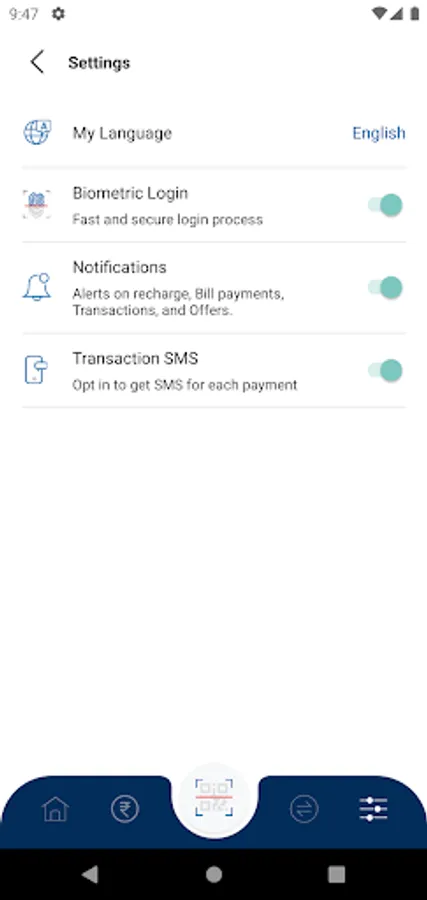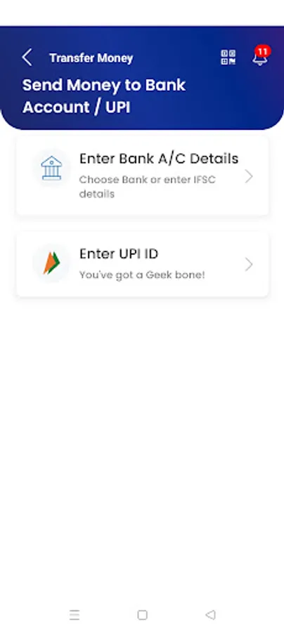 =>Scan and pay, Peer to Peer Transfer, UPI via Account details or VPA, IMPS, NEFT, RTGS, GPR Cards