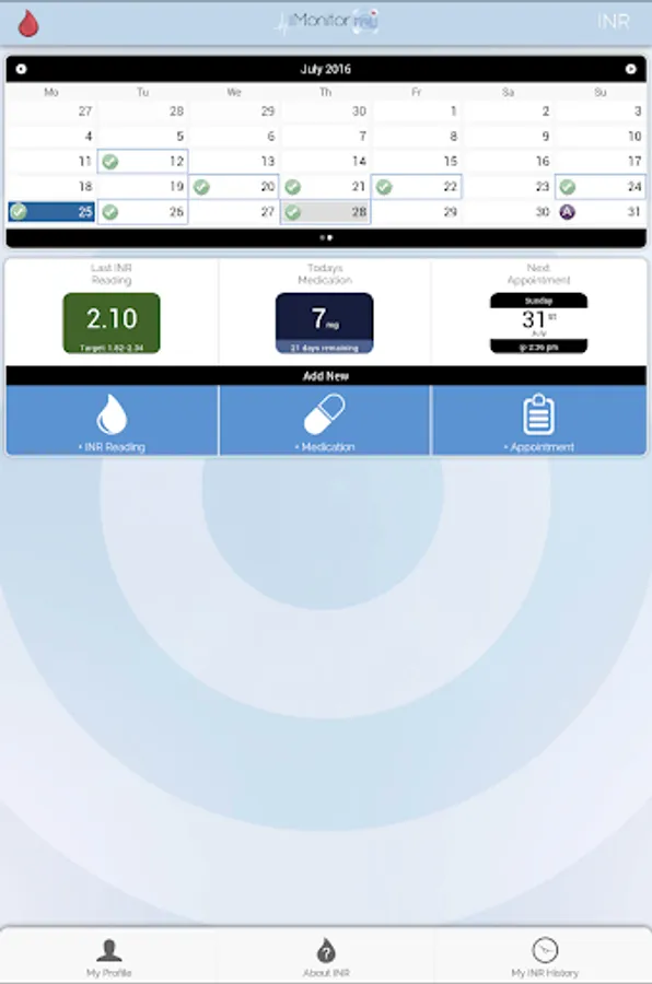 My INR is designed to empower patients to better monitor their INR reading and prescribed Warfarin or Coumadin.