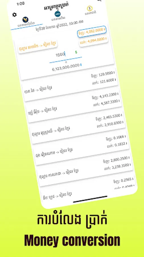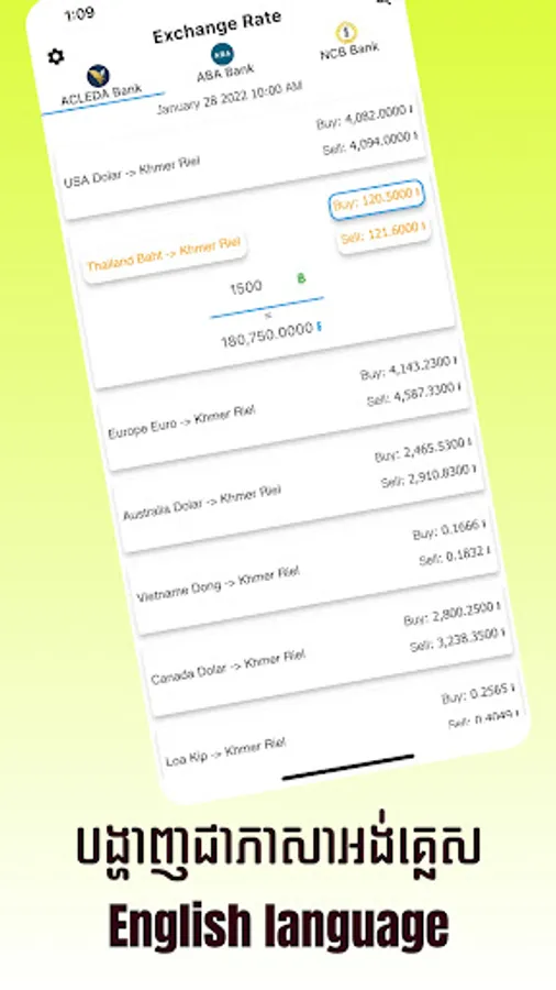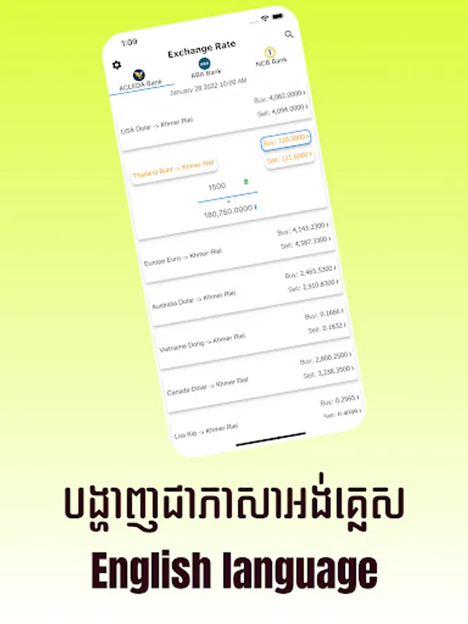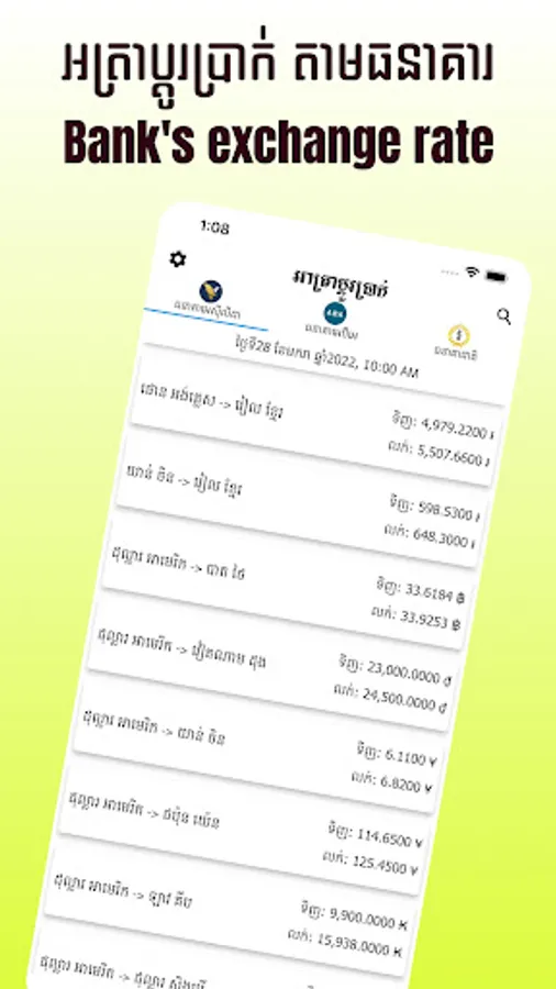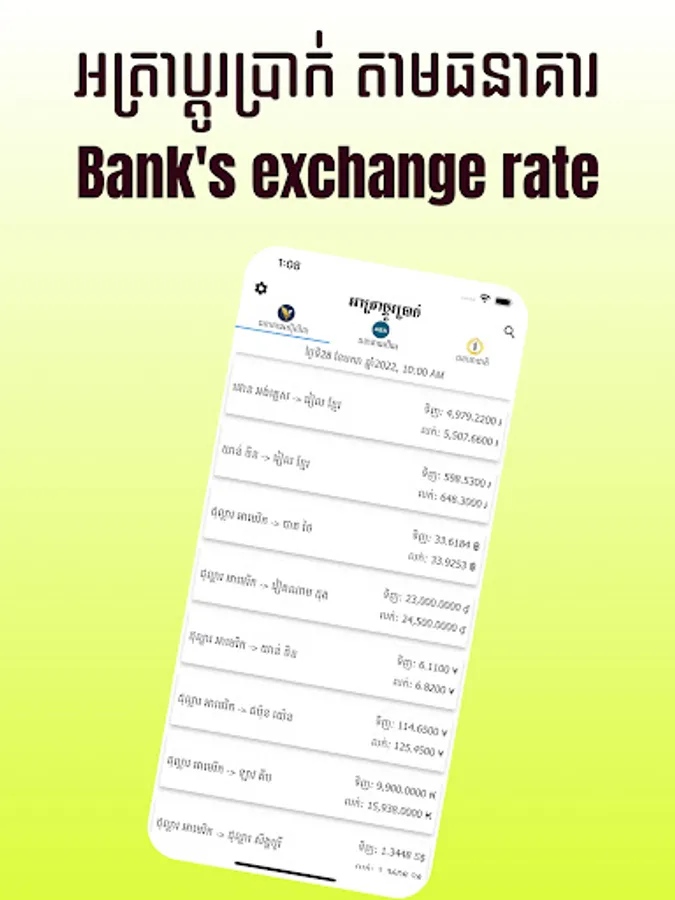 Khmer Exchange Rate brought to you with 3 banks API such as: