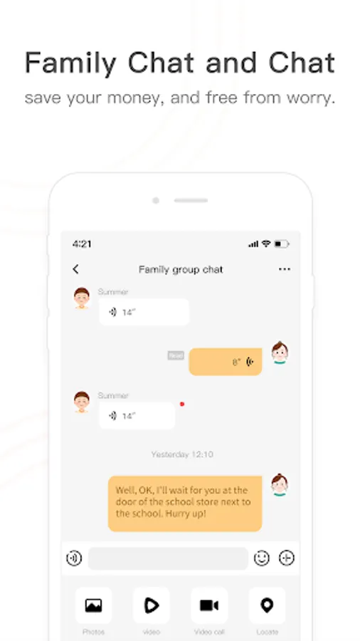 Voice messages can be sent between the watch and the APP, realizing a new form of communication between children and parents. In addition, the APP can send SMS text messages to the watch for greater diversity of communication.