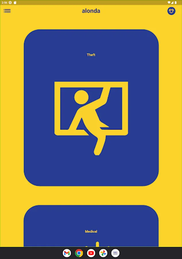 A user simply taps a button corresponding to the situation at hand, whether in need of emergency assistance or simply an essential service.