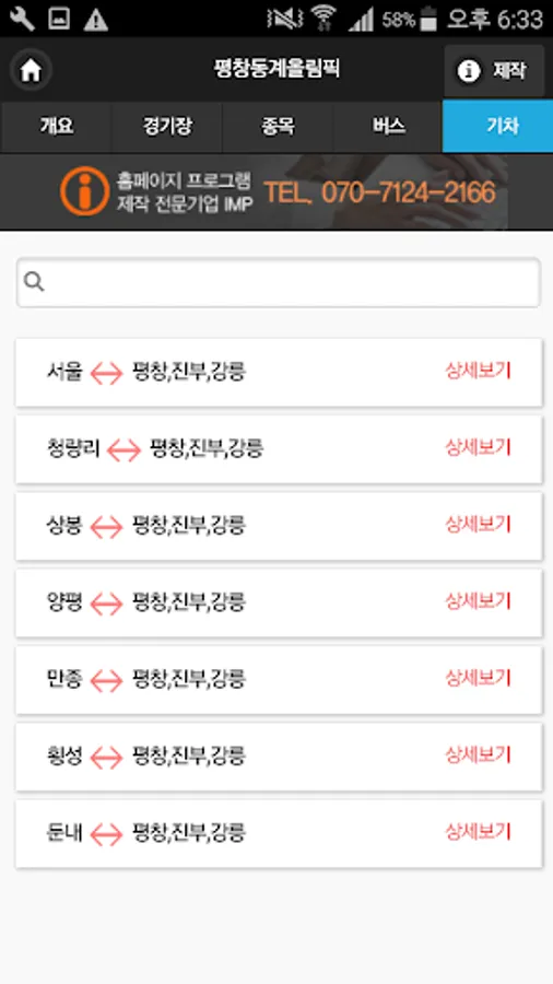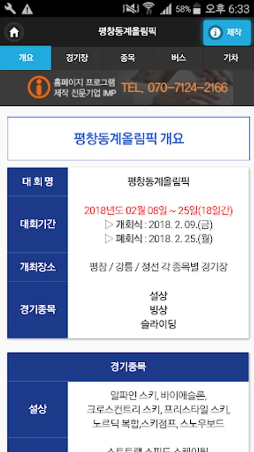 2. 2018 평창 올림픽의 성공적인 개최를 위하여 개인적으로 만든 앱입니다.