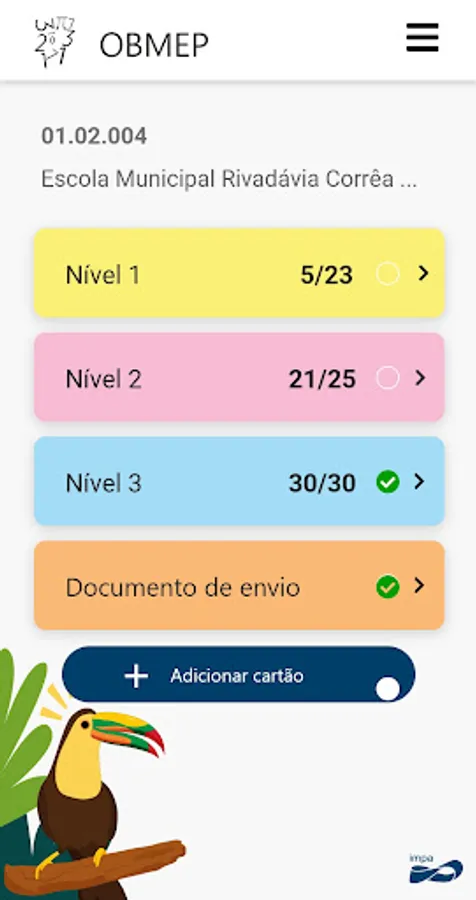 If you are responsible for administering the OBMEP tests at your school, you can use this application to scan and send the student response cards selected in the 1st. OBMEP phase instead of sending them by Post Office. You may also fill in the RAIG and Shipping Document.