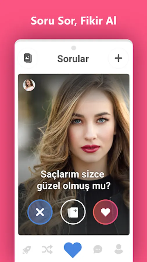 👉🏻 You can answer the questions asked by other users by clicking the heart icon at the bottom of the screen, and participate in the voting they started. (You can also ask questions to other users and start voting from this screen.)