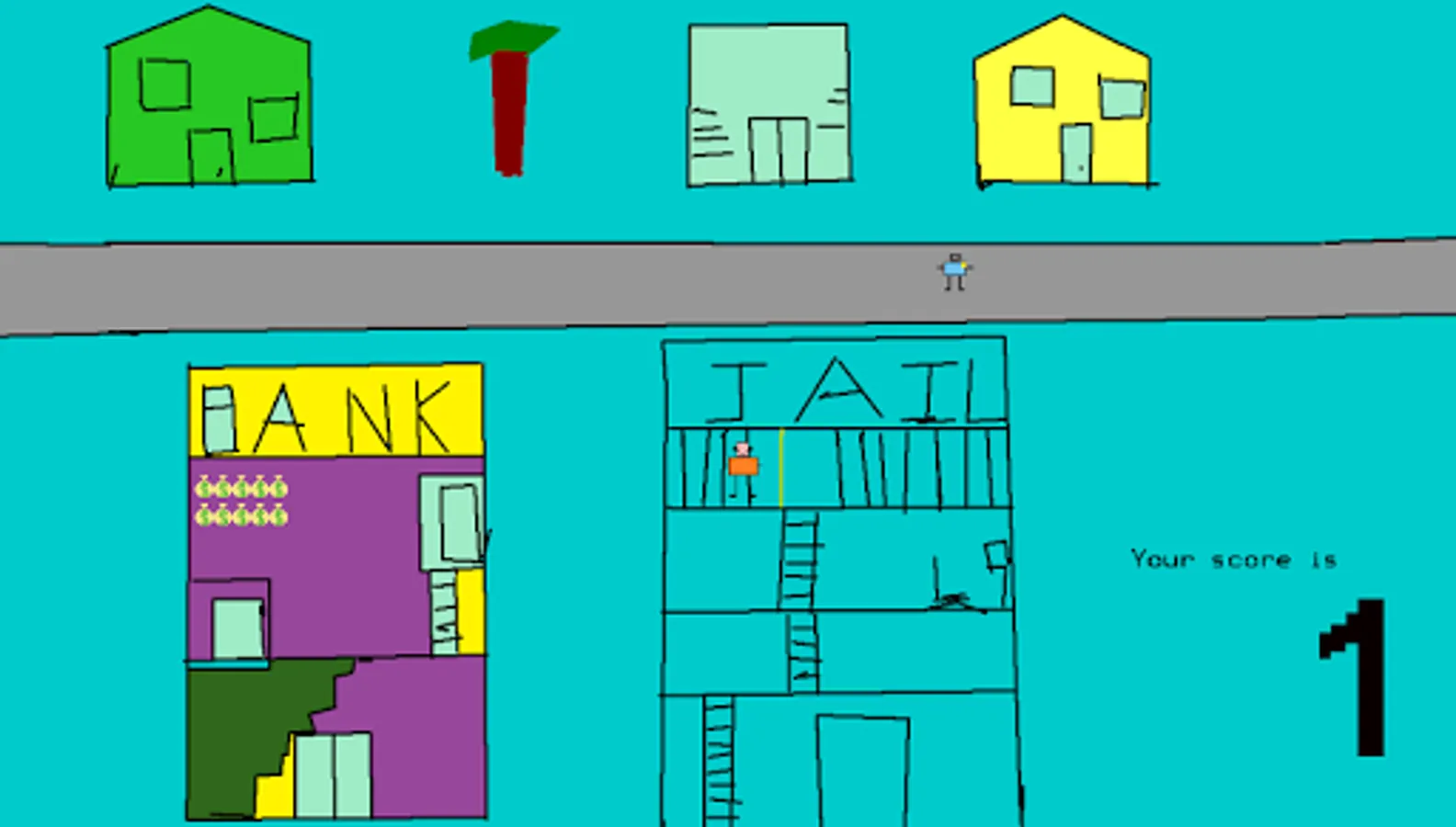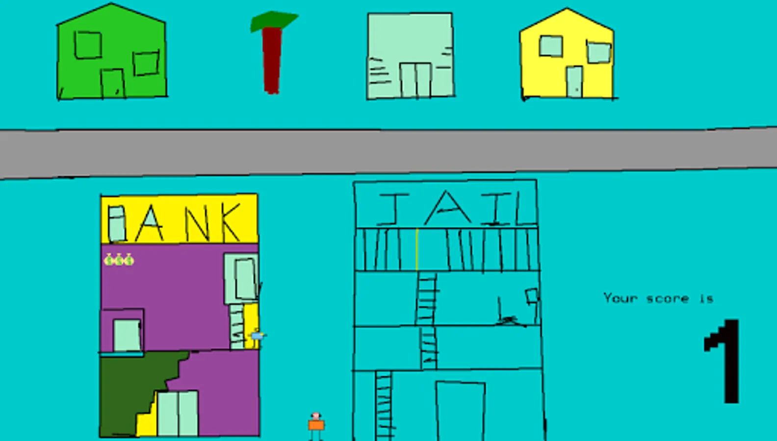 Catch the robber and send him to jail as many times as you can before he manages to steal all the money bags from the bank.