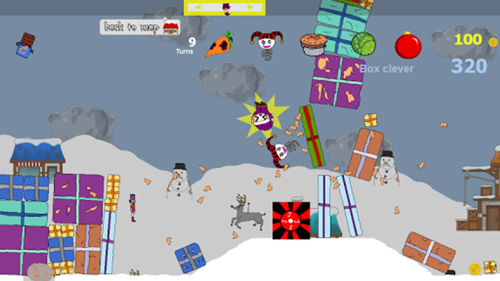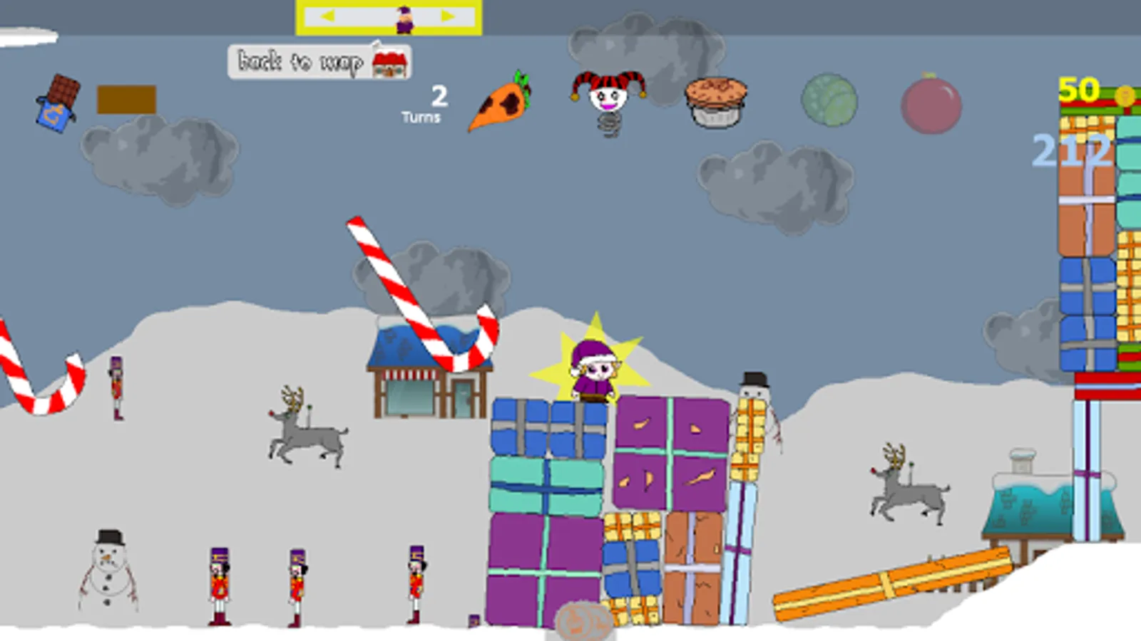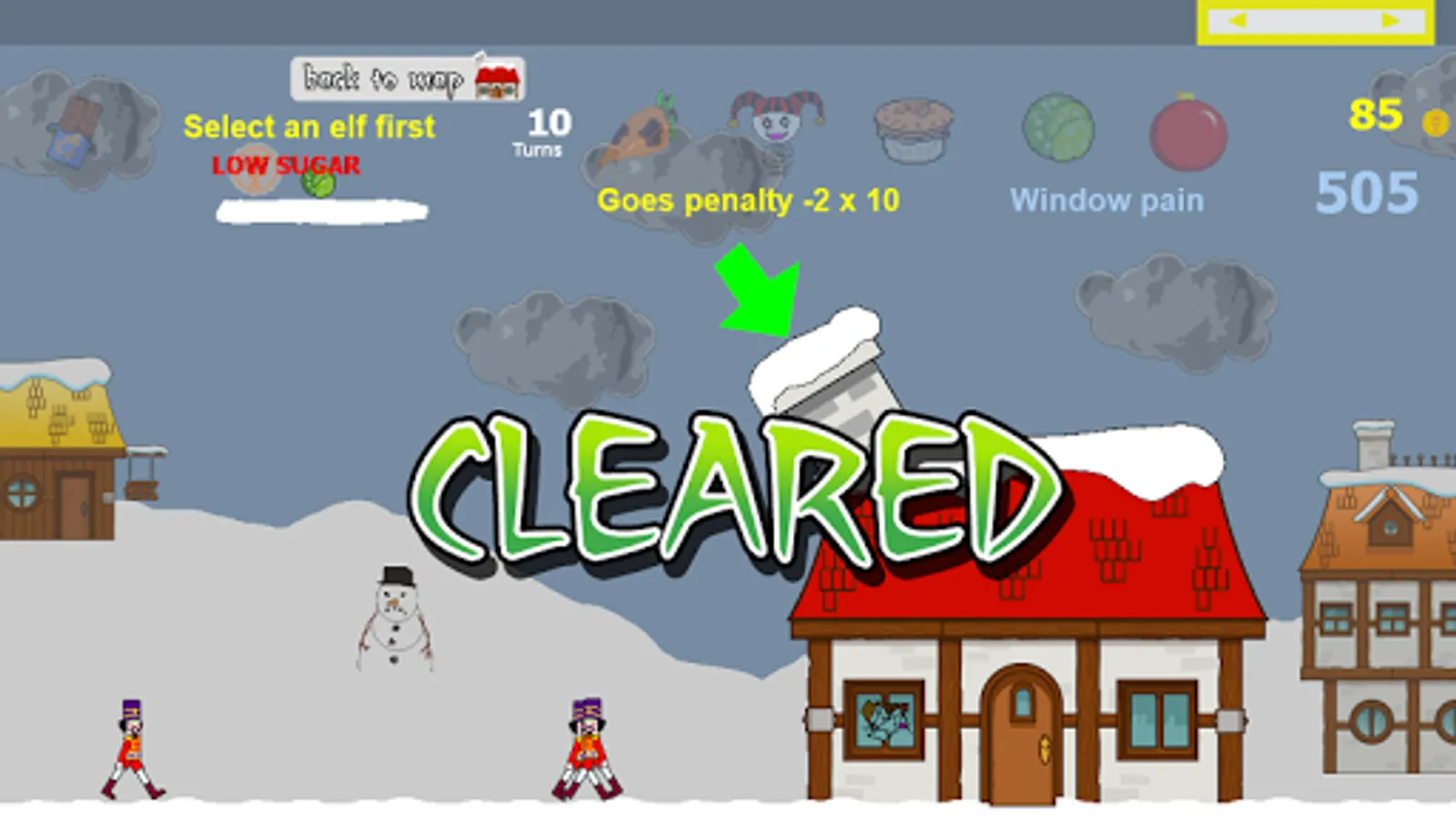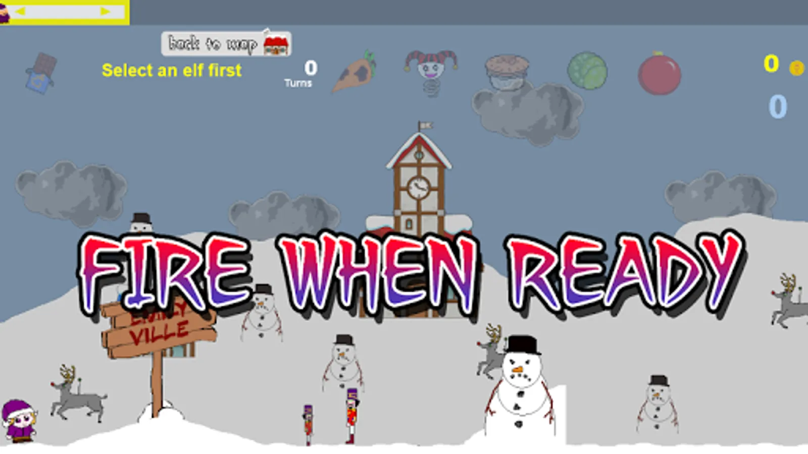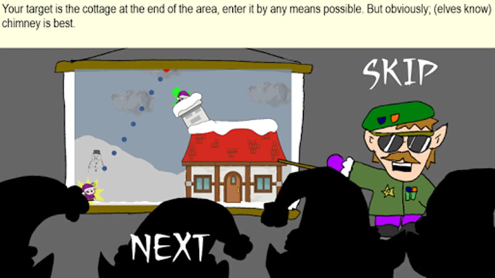 Select and fire your elves through the villages to search for Santa.