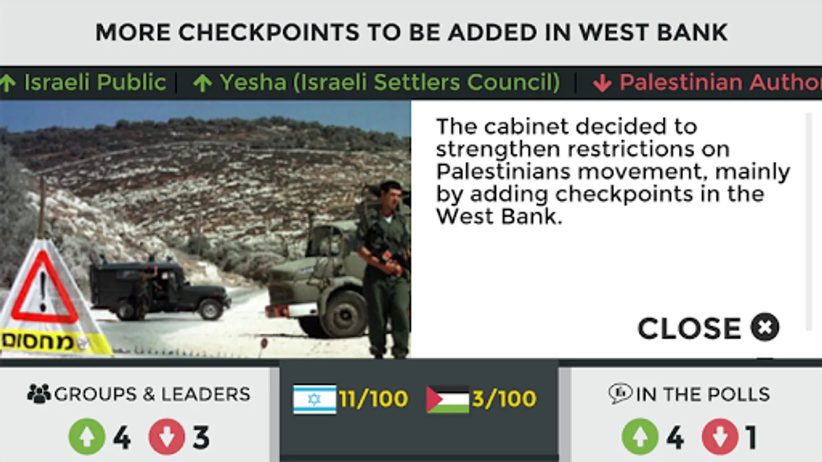 • PeaceMaker is two games in one: play both the role of the Israeli Prime Minister or the Palestinian President.