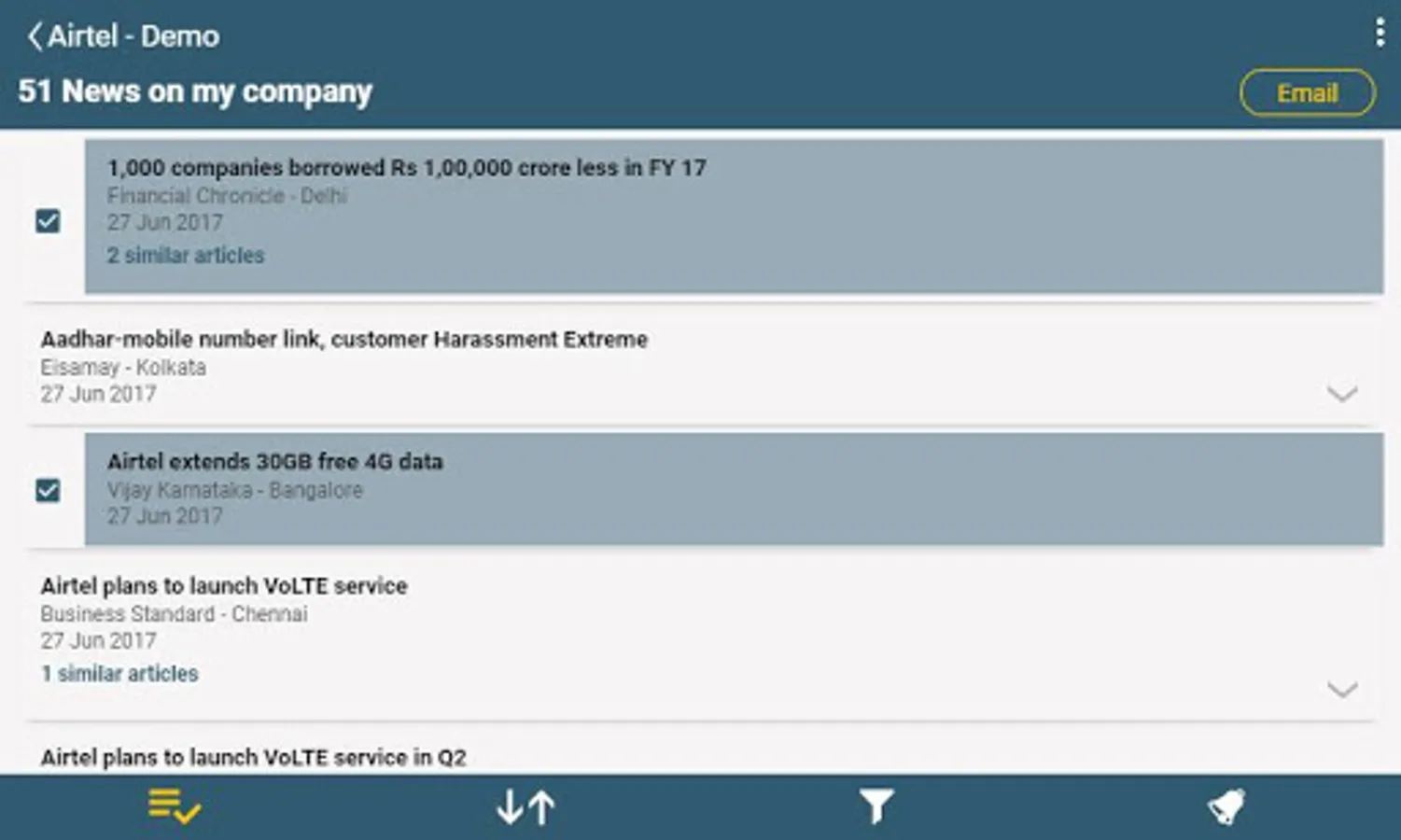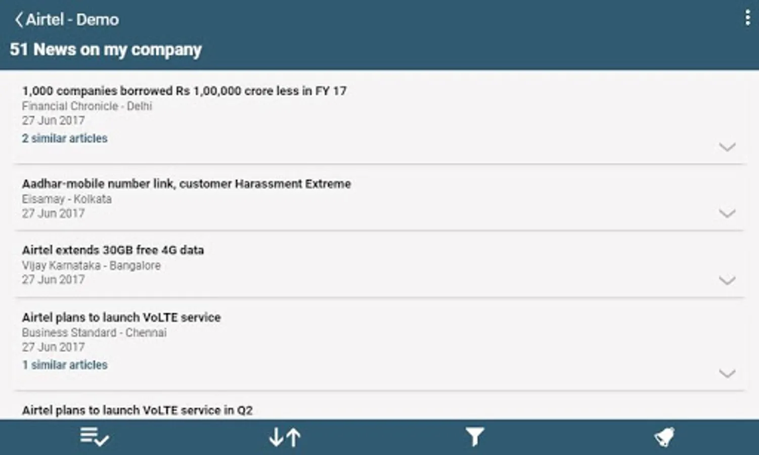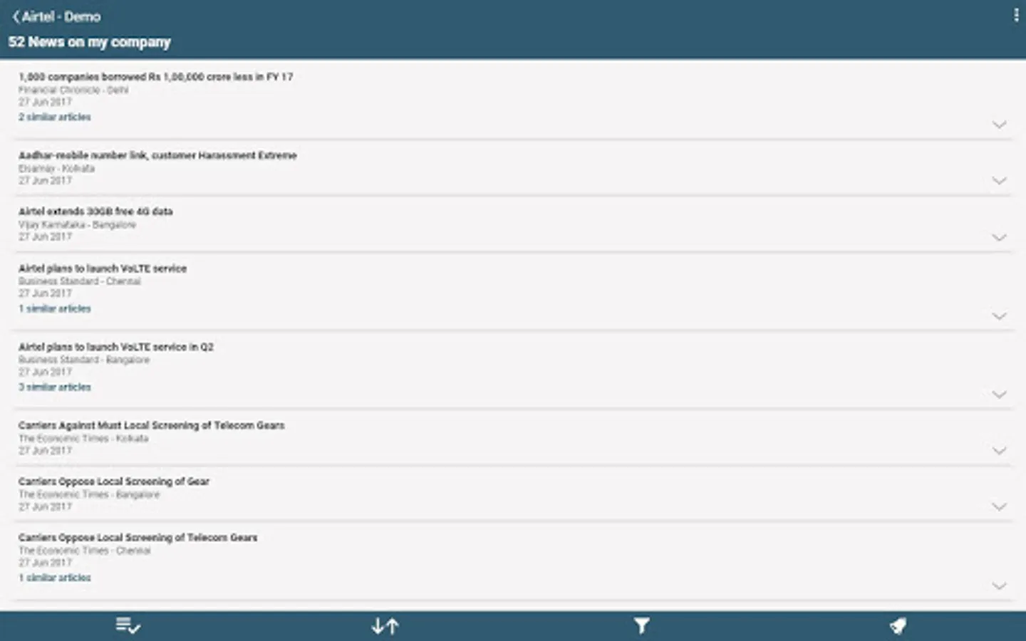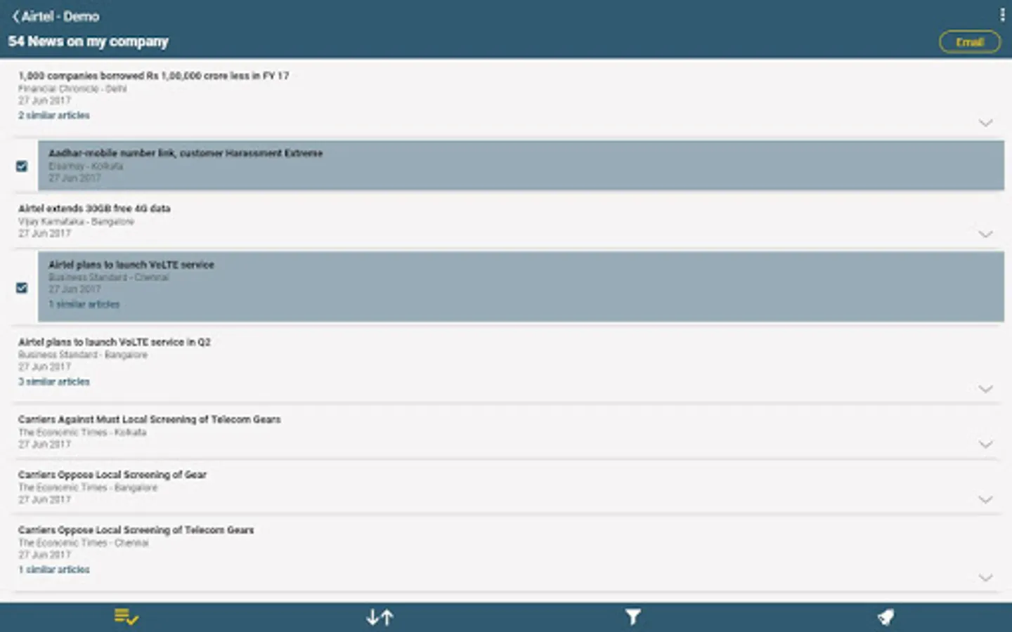 This app allows users to quickly view and manage the news coverage monitored by Impact. It covers news on the client's company, competitors or industry. Similar news stories are grouped together for easier viewing.