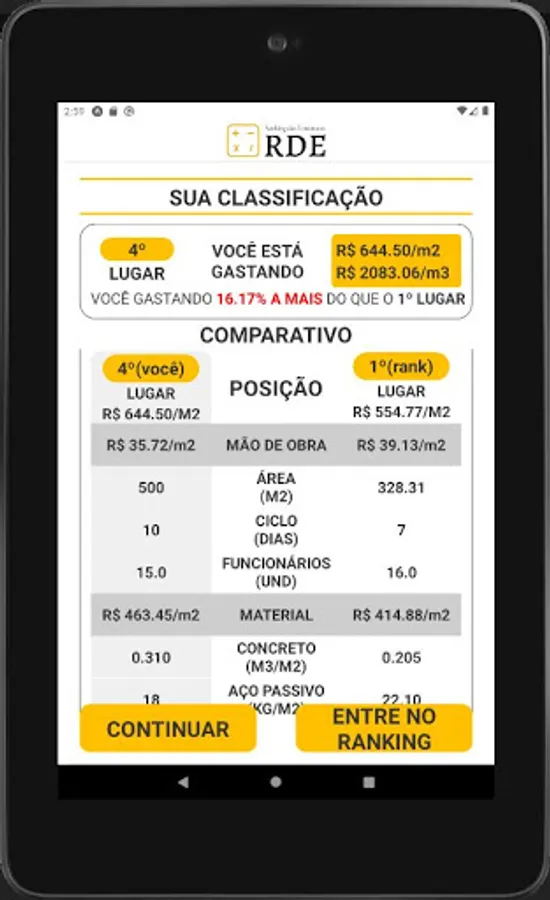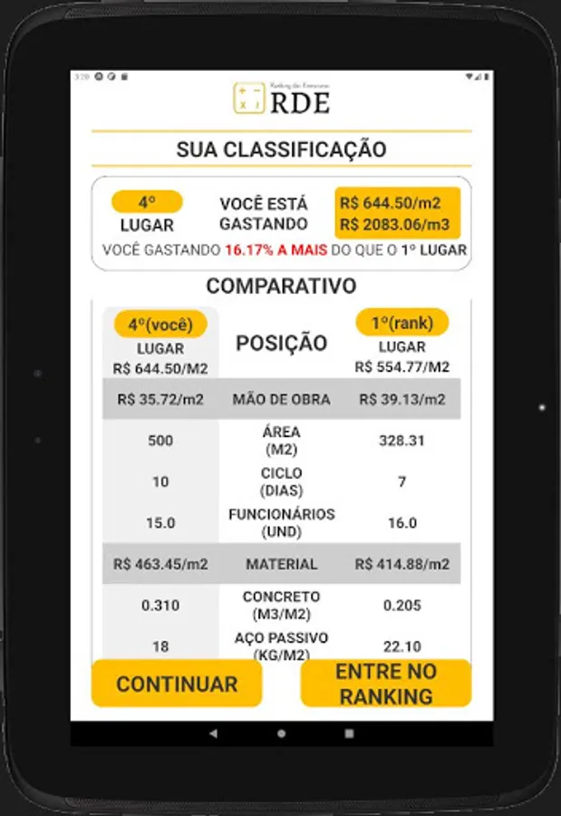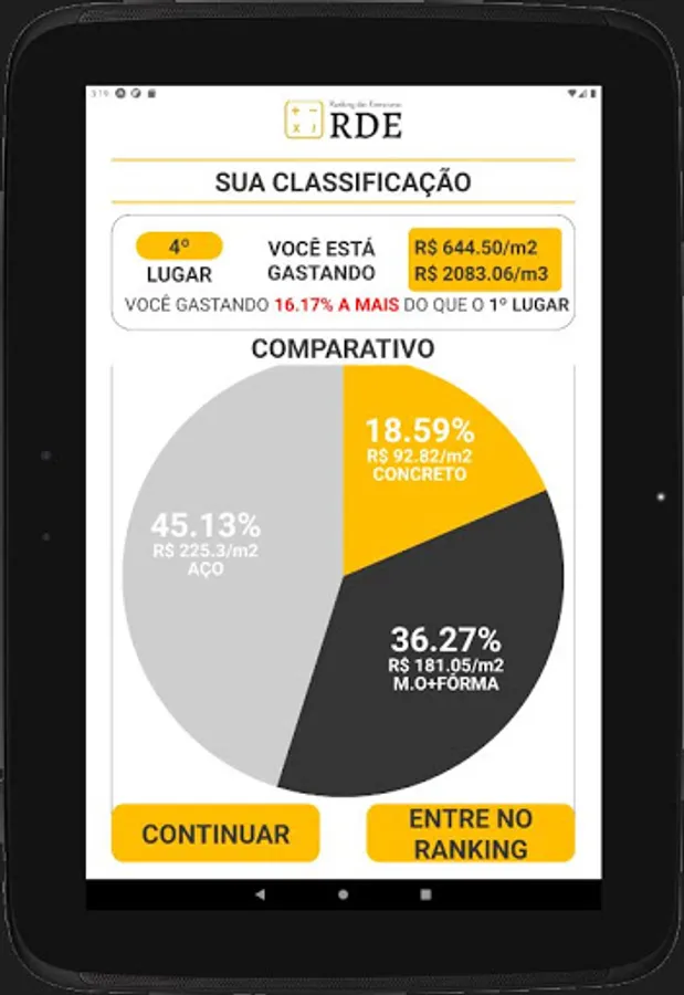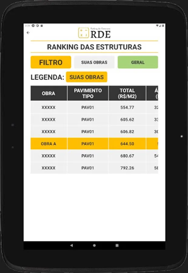 The choice of the structural system, in most cases, is made taking into account only the direct cost of the structure and many times, they use only the consumption of concrete as an indicator. However, a structure is made up of 3 basic inputs (concrete, steel and form) and labor. It is worth noting that the item form and labor represents an average of 50% of the total cost, the savings of which are achieved through execution productivity. The Ranking of Structures proposes an application capable of assisting the decision making of designers, engineers and construction companies regarding the choice of the best structural system for the execution of the concrete structure in question, in its most varied forms and compositions, proposing a methodology for the evaluation and automatic classification of the economic efficiency of the structural system adopted, considering the direct and indirect costs, in a global and systemic way.