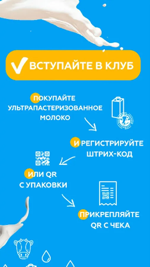Buy milk with the “Highest Milk Standard” sign and register a QR from the package. Attach a QR code from the check and get points that will allow you to participate in prize draws.