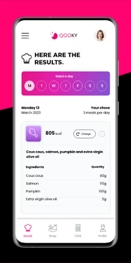 * With our easy to use interface, you will have the possibility to calculate your TDEE to know how many calories you consume in a day, indicate how many carbohydrates, fats and proteins you want to introduce, select how many meals you eat in your day and that's it, you will discover a series of food pairings that complete your day based on the quantities you enter!