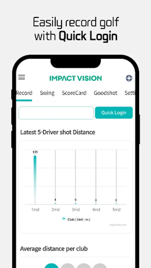 ■ Record : Quick Login, Latest 5-Driver Shot Distance, Average distance per club, Practice History by Date.