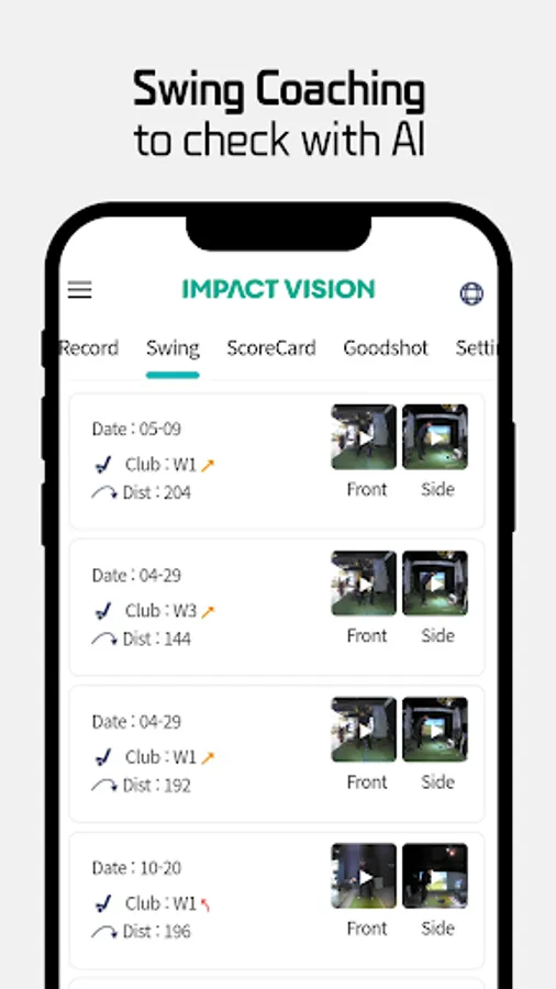 ■ Good shot : Your good shot swing is automatically saved when playing screen golf.