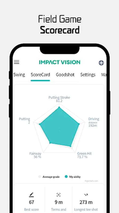 ■ Scorecard : Record the Driving Distance, Green hit, Fairway, Putting, Putting Storke graph. You can record the screen golf round score.