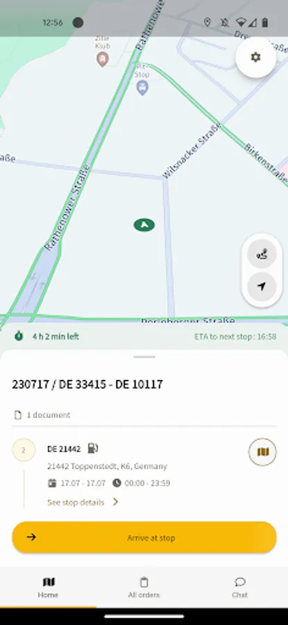 Do you have questions about your orders? Then feel free to start a chat with your dispatchers. Use the app to upload images (like the Proof of Delivery (POD) or other documents) and share your current location with the company you are driving for.