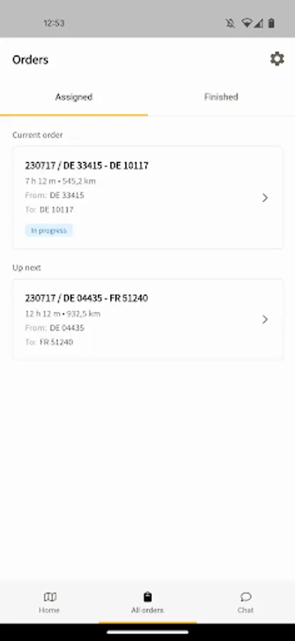 Simply start your work by receiving your orders in the DriverApp, and view all your received orders in the overview.