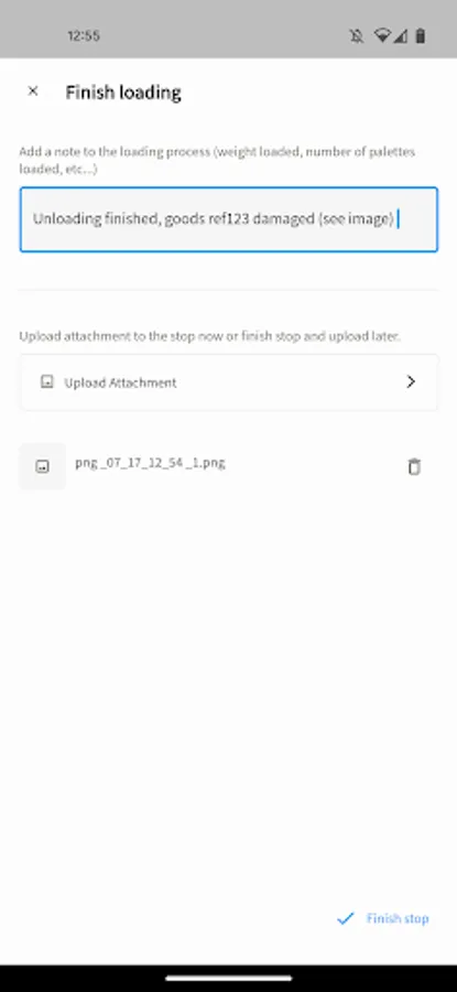 3. Update status at every stop (e.g. loading, unloading, refuelling, etc.)