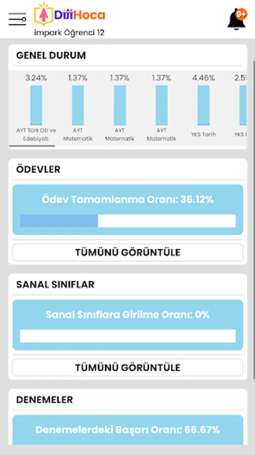 Our parents can follow the status of their children at school with this application. You can see the success in the practice exams, the status of the given assignments, the status of the lessons, daily virtual classroom activities.