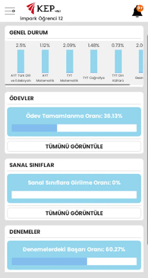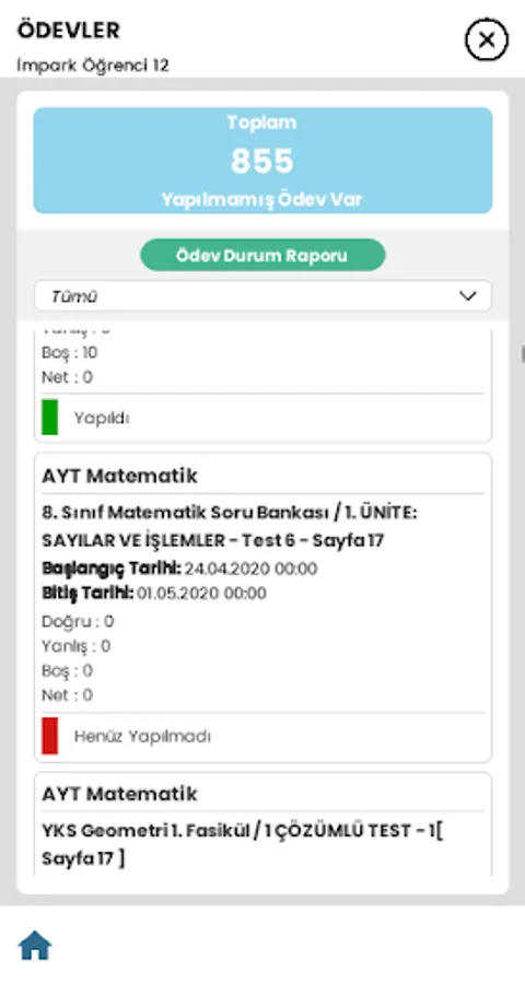 Our parents can follow the status of their children at school with this application. You can see the success of the practice exams, the status of the given assignments, the status of the lessons, daily virtual classroom activities.