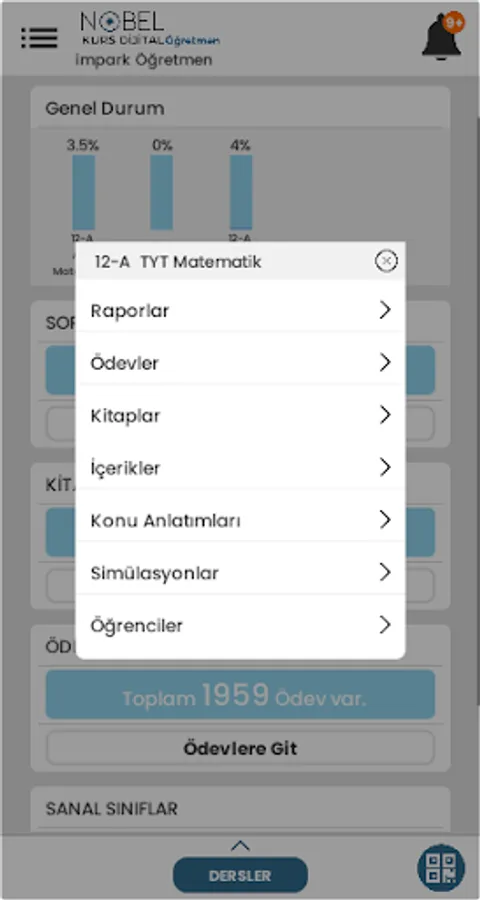You can create a test from thousands of questions paired with the subjects and achievements determined by the Ministry of National Education Board of Education and Discipline and assign these tests as homework. You can get Pdf printouts of the tests. You can check the students' homework status and see the correct and incorrect numbers.